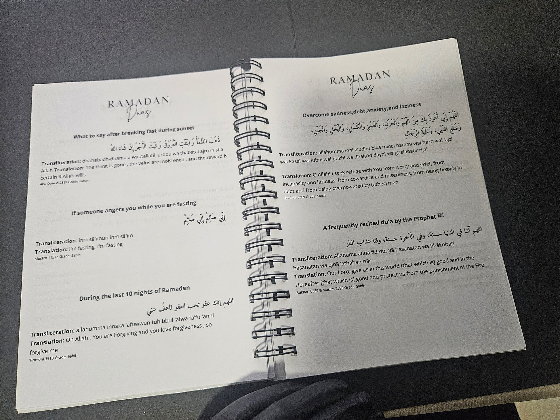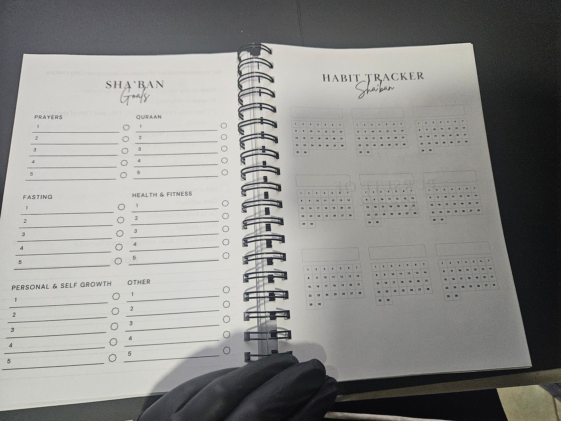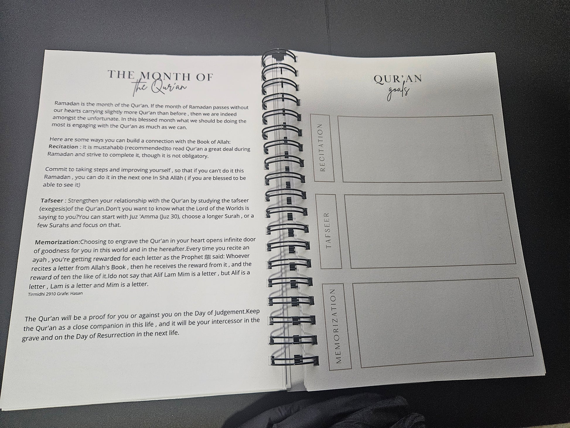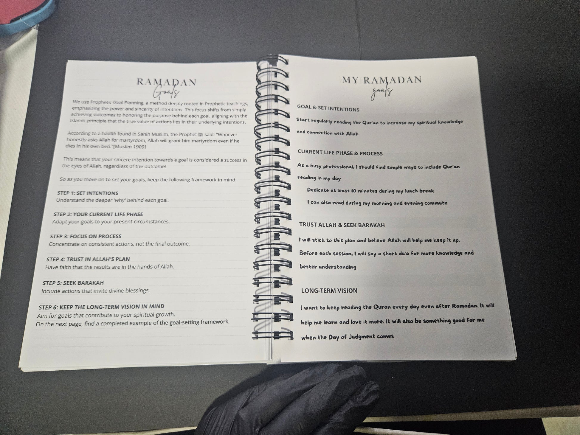 - 30 day Ramadan planner includes a section for your daily schedule, habits, prayers, a dua/hadith a day a section for reflections, gratitude or notes.