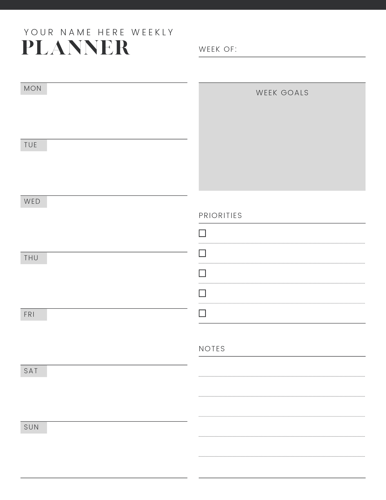 Printed on high quality 100gsm paper. 52 sheets. Undated perfect to start any time of the year. (Please let us know in the notes section at checkout name to be added on the planner)
