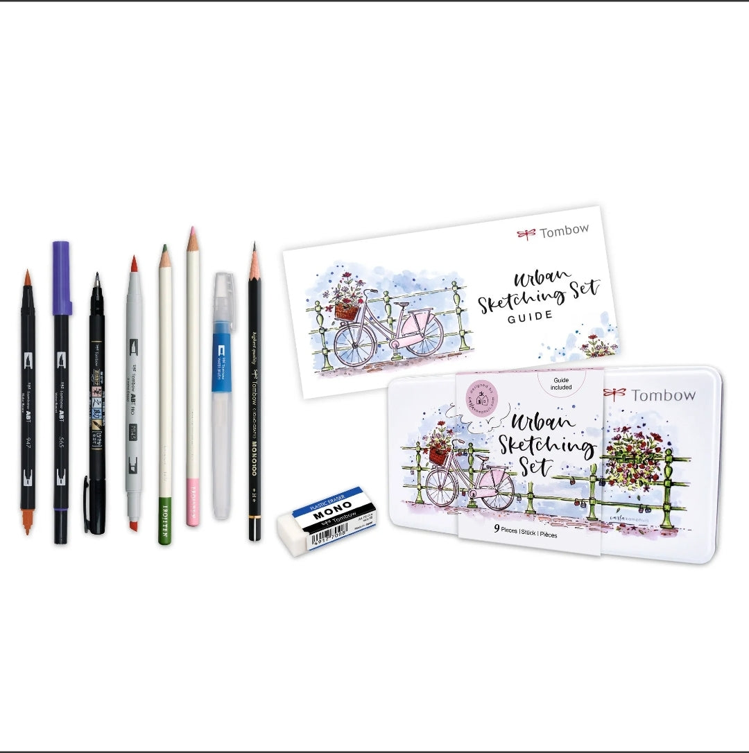 The Tombow Urban Sketching Set is the perfect aesthetic and portable drawing companion. Its metal box ensures easy storage, protection, and quick access to your supplies while on the move. Equipped with high-quality Tombow products, this kit has everything you need to start sketching urban settings. Ideal for both experienced artists and beginners, it makes a thoughtful gift with the included urban sketching guide to guide you on your artistic journey.